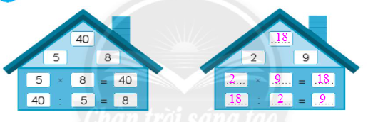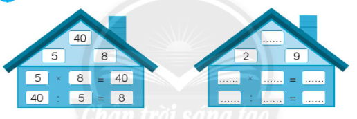Dựa vào các số đã cho ta lập các phép nhân và chia tương ứng theo mẫu.