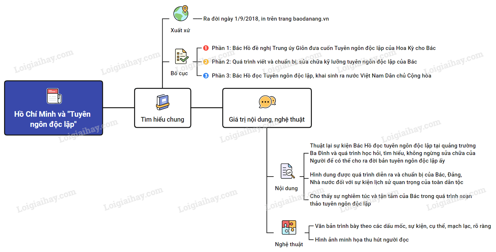 Sơ đồ tư duy văn bản “Hồ Chí Minh và Tuyên ngôn độc lập”: