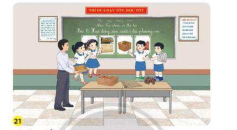 – Học sinh chia sẻ với bạn về hoạt động sản xuất, sản phẩm, lợi ích.