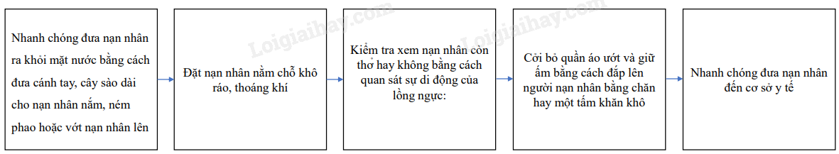 – Nhanh chóng đưa nạn nhân ra khỏi mặt nước bằng cách đưa cánh tay, cây sào dài cho nạn nhân nắm, ném phao hoặc vớt nạn nhân lên