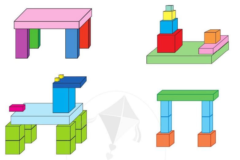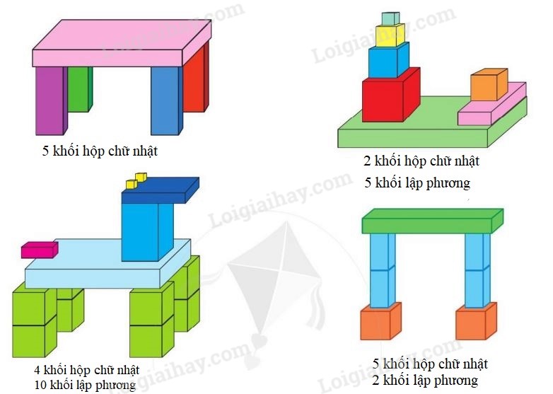 b) Xếp hình em thích bằng những khối hộp chữ nhật và khối lập phương.