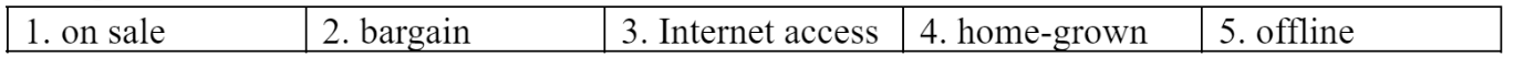 Internet access          offline            home-grown          bargain                       on sale