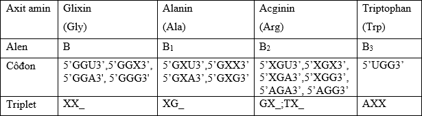 A sai, nếu thay nucleotit thứ 2 bằng G ↔ XX_ → XG_ → codon: GX_ → không thể tạo ra alen B.