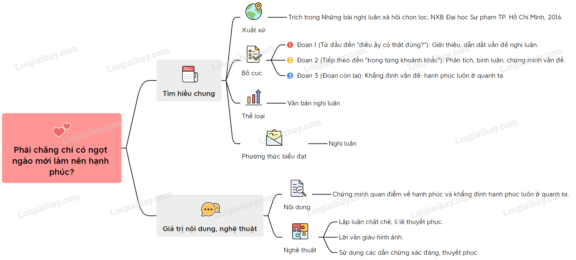 Sơ đồ tư duy văn bản “Phải chăng chỉ có ngọt ngào mới làm nên hạnh phúc”: