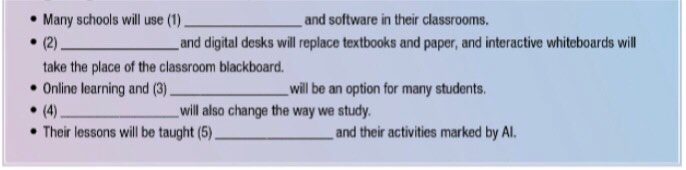 1. apps   2. Tablets   3. virtual classroom   4. Artificial Intelligence / AI   5. online