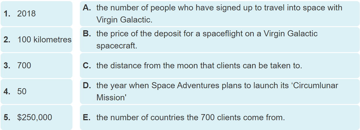 (Nhìn vào những ví dụ quảng cáo từ trang web của một công ty du lịch không gian. Gạch dưới những từ/ cụm từ mà bạn nghĩ rằng làm cho bài quảng cáo có sức thuyết phục hơn.)