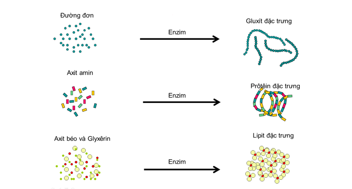 Tổng hợp là quá trình hình thành các chất hữu cơ phức tạp từ các chất đơn giản dưới sự xúc tác của enzyme