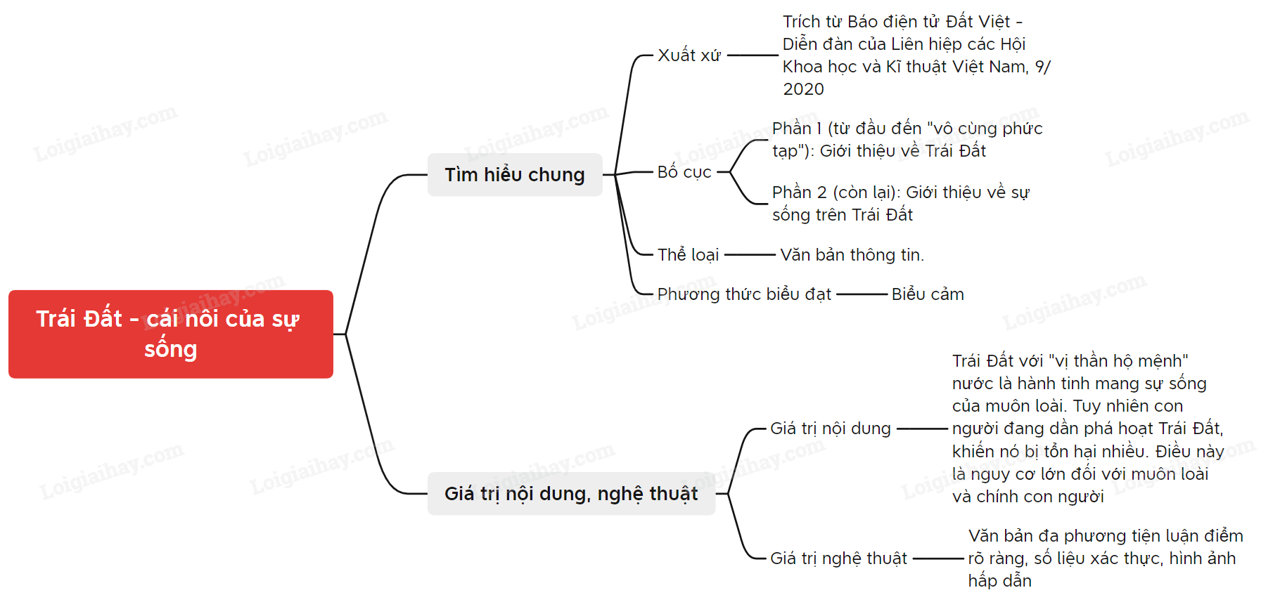 Sơ đồ tư duy văn bản “Trái Đất – cái nôi của sự sống”: