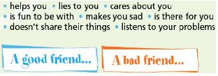 3. What makes a good friend? Put the ideas in the list under the headings. Add two more of your own.