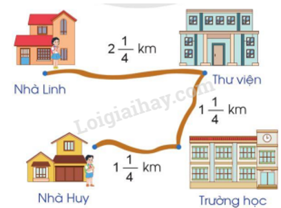 Chiều dài quãng đường từ nhà Linh đến thư viện là $2\frac{1}{4}$ km.