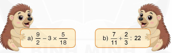 a) $\frac{9}{2} – 3 \times \frac{5}{{18}} = \frac{9}{2} – \frac{5}{6} = \frac{{27}}{6} – \frac{5}{6} = \frac{{22}}{6} = \frac{{11}}{3}$