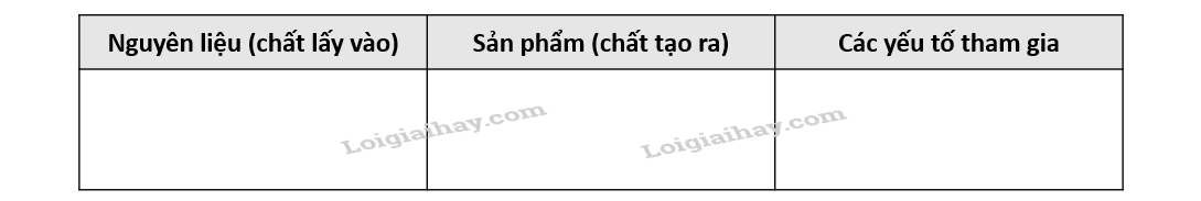 Trong quá trình … (1) …, trao đổi chất và chuyển hóa năng lượng diễn ra … (2) … Nước và … (3) … được lấy từ môi trường ngoài để tổng hợp chất hữu cơ như … (4) … và giải phóng … (5) … Cũng trong quá trình này, … (6) … chuyển hóa thành … (7) … dự trữ trong các hợp chất hữu cơ.
