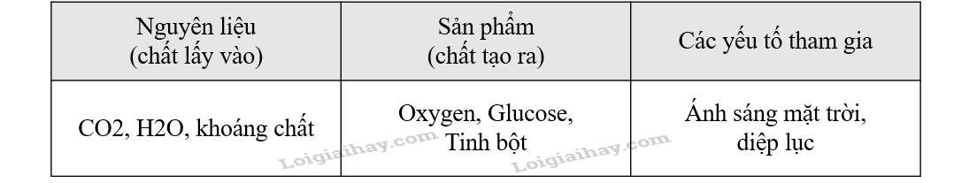 Nắm được quá trình quang hợp kết hợp quan sát hình vẽ để trả lời câu hỏi