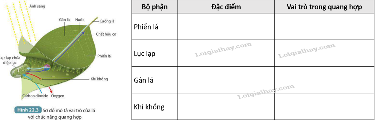 Đặc điểm của lá cây phù hợp với chức năng quang hợp: