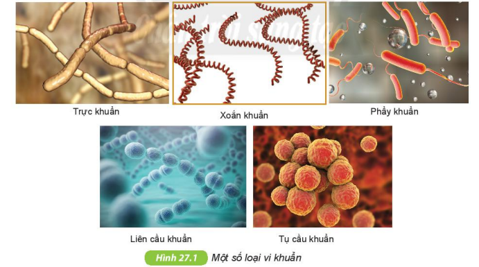 Quan sát Hình 27.1 SGK KHTN 6, nhận xét về hình dạng của các loại vi khuẩn, dựa vào hình dạng để xếp chúng vào các nhóm khác nhau.