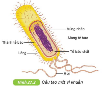 Quan sát Hình 27.2 SGK KHTN 6 để trình bày cấu tạo của tế bào vi khuẩn.