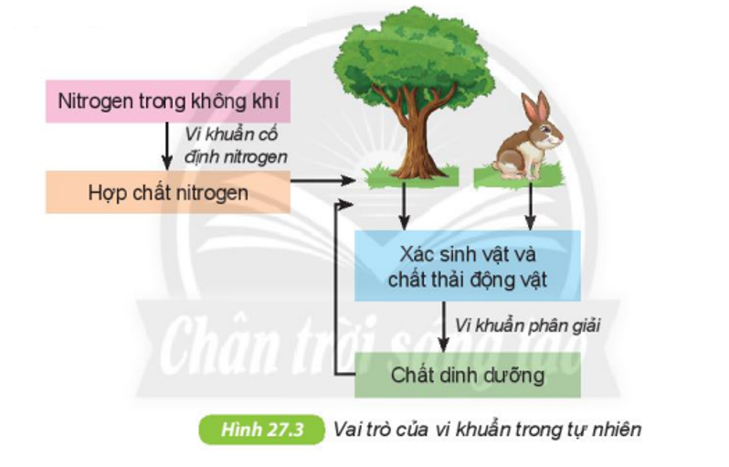 Quan sát Hình 27.3 SGK KHTN 6, nêu vai trò của vi khuẩn trong tự nhiên.