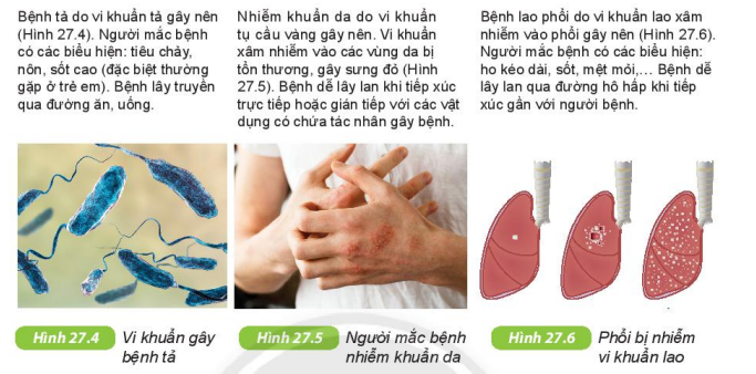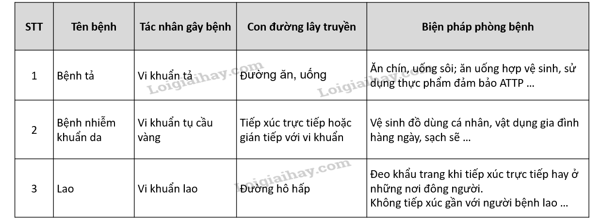 Vi khuẩn có thể gây ra nhiều bệnh nguy hiểm cho con người. Em hãy nêu tên một số bệnh phổ biến, tác nhân gây bệnh, con đường lây truyền và biện pháp phòng bệnh.