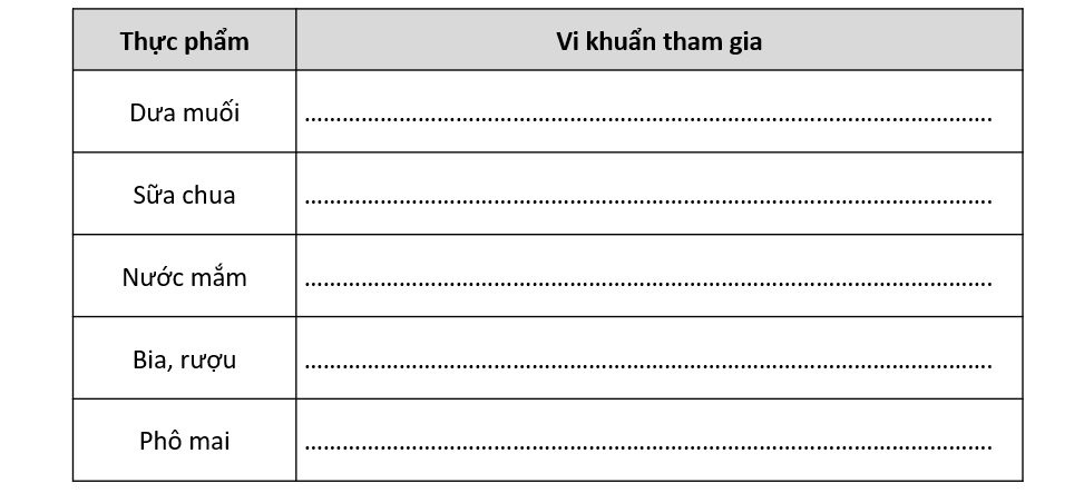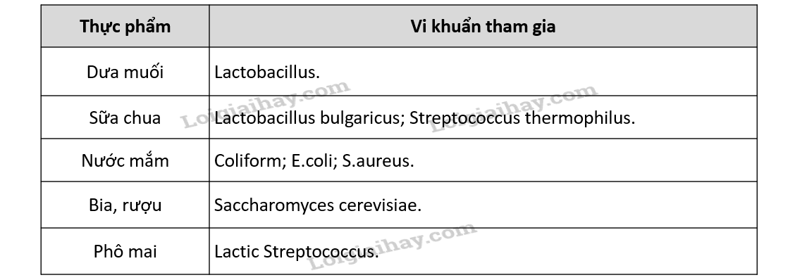 a) Dựa vào kiến thức đã học, em hãy cho biết nhóm vi khuẩn nào được ứng dụng trong quá trình sản xuất các loại thực phẩm sau: