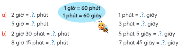 b) 2 giờ 30 phút = 60 phút x 2 + 30 phút = 150 phút