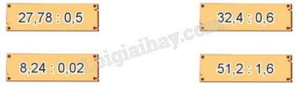 Chuyển các phép chia sau thành phép chia cho số tự nhiên: 27,78 : 0,5 Thực hiện phép chia rồi kiểm tra lại kết quả bằng phép nhân 3,6 : 1,8 Một căn phòng có dạng hình chữ nhật với diện tích là 17,76 m2