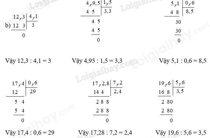 – Bỏ dấu phẩy ở số chia rồi thực hiện phép chia như chia cho số tự nhiên.