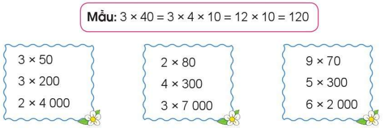Vận dụng các tính chất của phép nhân để tính nhẩm (theo mẫu):