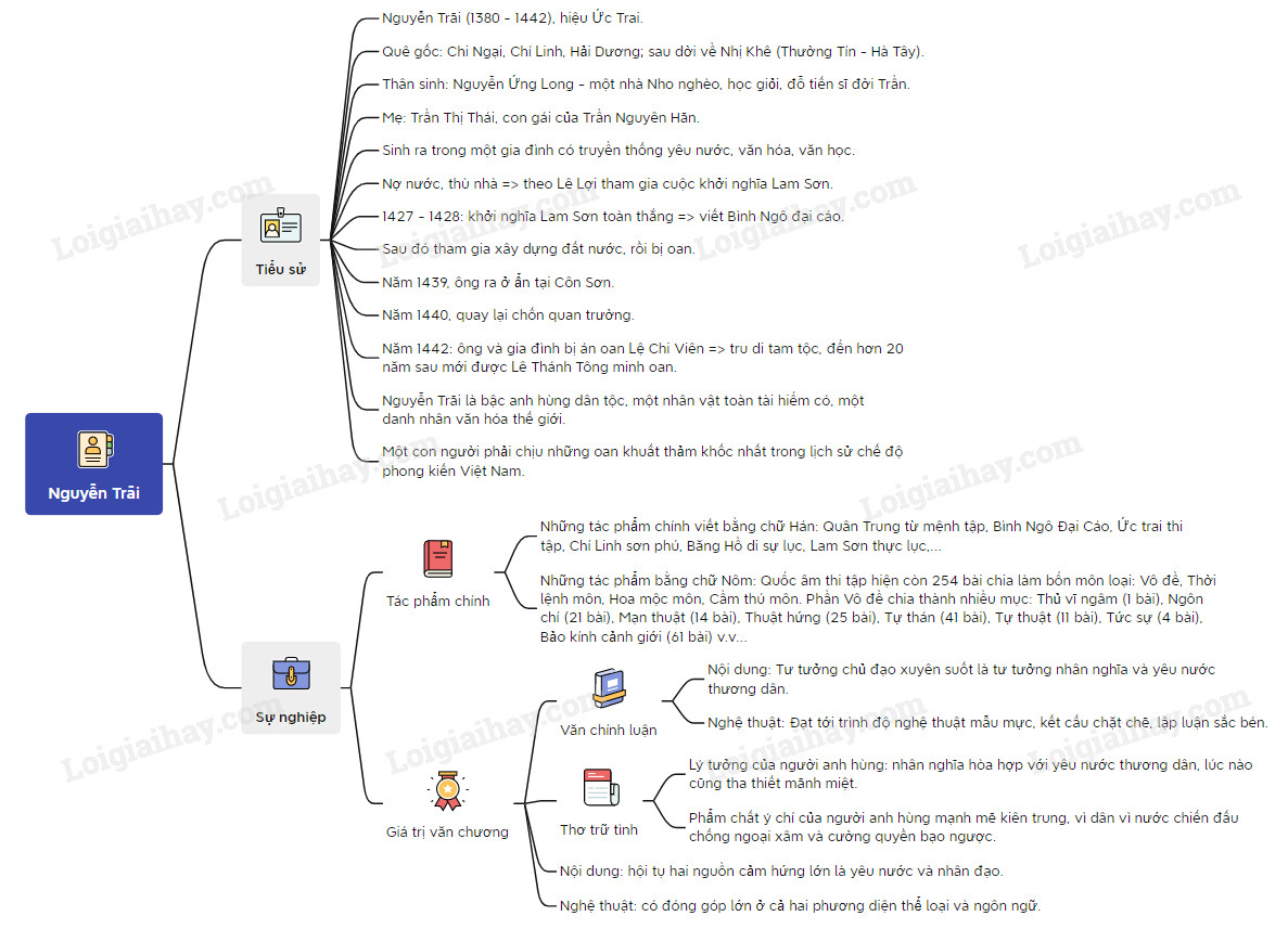 Sơ đồ tư duy tác giả Nguyễn Trãi: