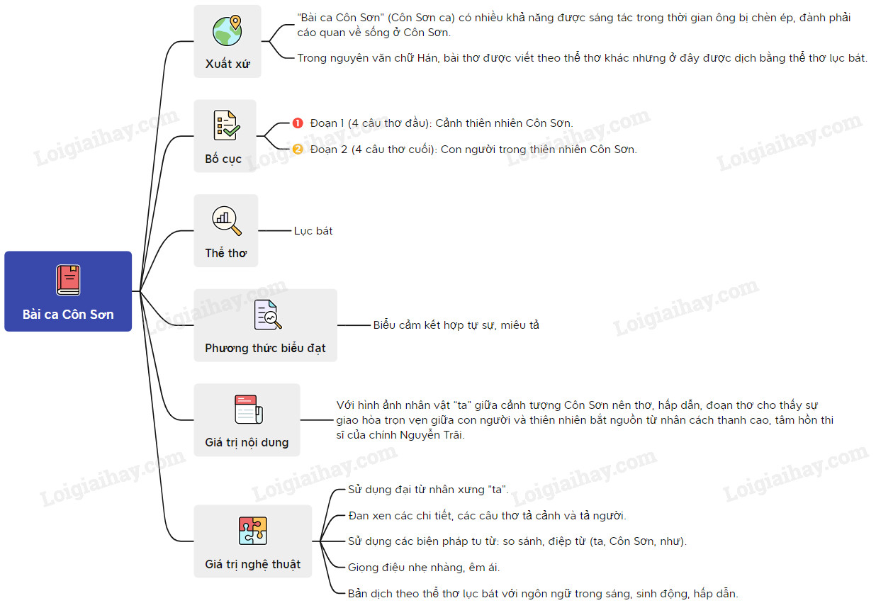 Sơ đồ tư duy bài thơ Bài ca Côn Sơn: