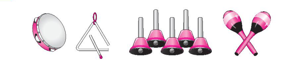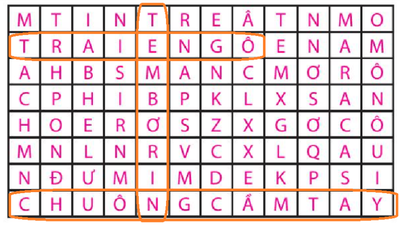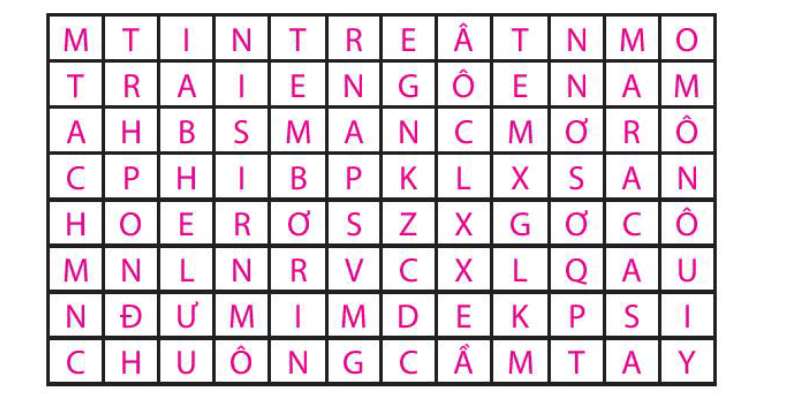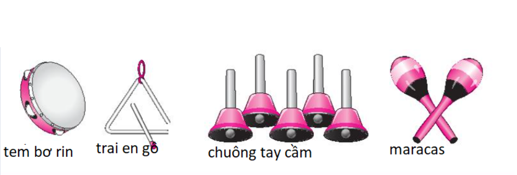 Em hãy khoanh các nhạc cụ dưới đây, sau đó tìm và khoanh vào tên các nhạc cụ có trong ô chữ