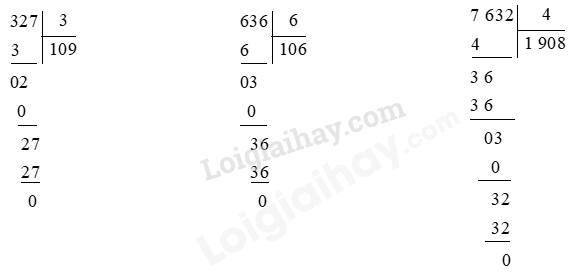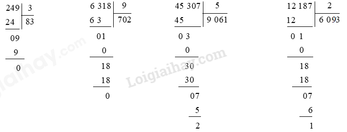 Thực hiện chia lần lượt từ trái qua phải các chữ số của số bị chia cho số chia