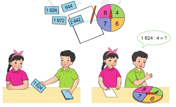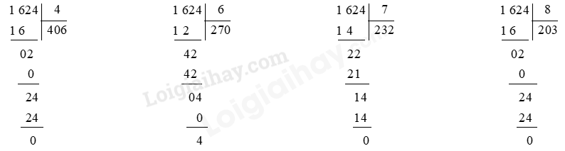 Chọn số bị chia là 1 624, số chia có thể là các số 4; 6; 7 hoặc 8.