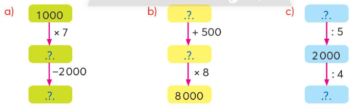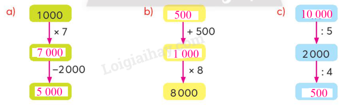 Thực hiện tính theo chiều mũi tên rồi viết kết quả thích hợp vào chỗ trống.