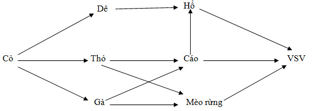Câu 3. cho một quần xã sinh vật gồm các loài sinh vật sau: vi sinh vật, dê, gà, cáo, hổ, mèo rừng, cỏ, thỏ. Sơ đồ có thể có về lưới thức ăn trong quần xã đó là: