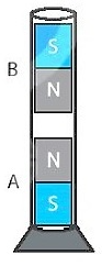 Quan sát hai thanh nam châm đặt trong ống thủy tinh ở hình vẽ. Tại sao thanh nam châm B lại lơ lửng phía trên thanh nam châm A?