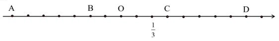 Điểm B nằm bên trái gốc O và cách gốc O một khoảng bằng \(\dfrac{1}{3}\) nên điểm B biểu diễn số hữu tỉ \(\dfrac{{ – 1}}{3}\).