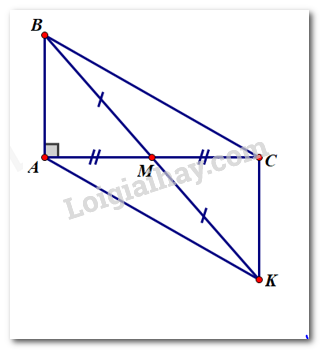 Cho tam giác \(ABC\) vuông tại \(A,M\) là trung điểm của \(AC\). Trên tia đối của tia \(MB\) lấy điểm \(K\) sao cho \(BM = MK.\)