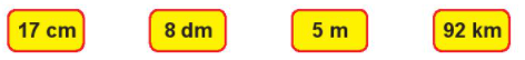 Em thực hiện đọc các số tự nhiên rồi đọc tên đơn vị đo độ dài cm, dm, m hoặc km theo sau cho thích hợp.