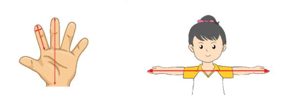 Đối với từng bạn, chiều dài bàn tay và sải tay có thể khác nhau.