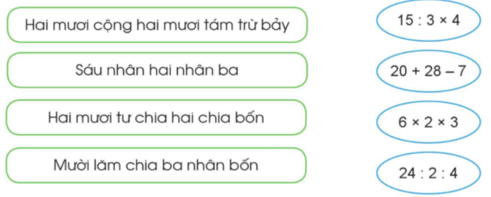 Quan sát các biểu thức rồi chọn cách đọc tương ứng.