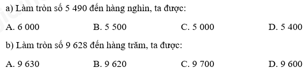 Vậy làm tròn số 5 490 đến hàng nghìn ta được số 5 000. Chọn C.
