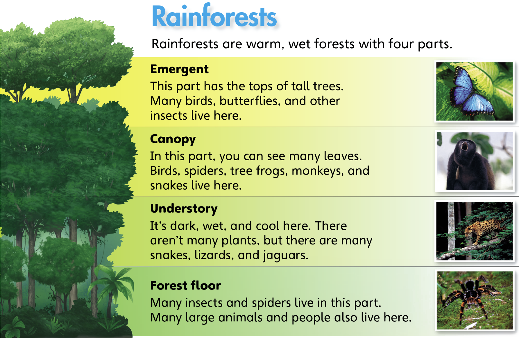 Rừng nhiệt đới là những khu rừng ẩm ướt, ấm áp gồm bốn phần.