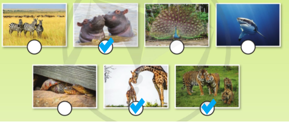 (Đọc lại. Đánh dấu vào những loài động vật có trong sở thú.)