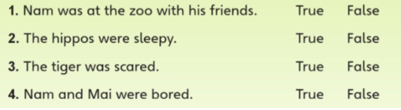 1. Nam was at the zoo with his friends. (Nam đã ở sở thú cũng với những người bạn.)