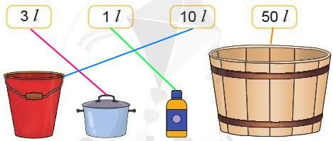 Chọn thẻ ghi số lít thích hợp với mỗi đồ vật: