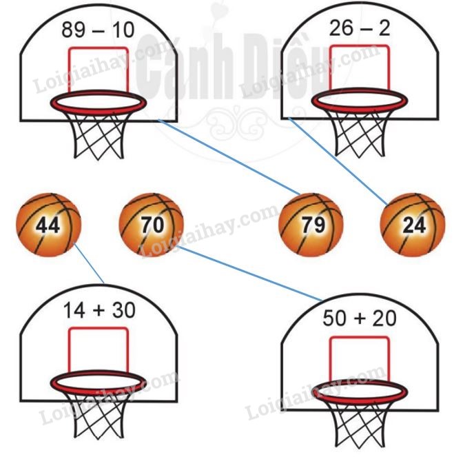 Quan sát hình, tính các phép tính trong hình và chọn kết quả đúng của từng phép tính.