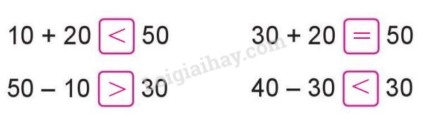 Tính các phép tính, rồi so sánh để điền dấu thích hợp.