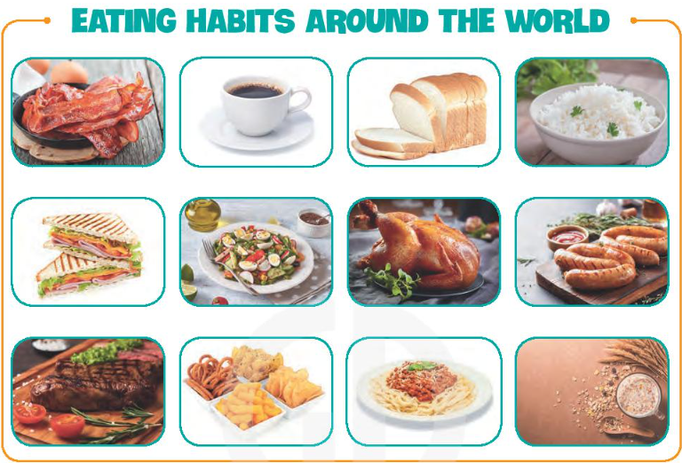 (Làm việc nhóm. Thiết kế một áp phích về thói quen ăn uống ở một khu vực hoặc một quốc gia xa lạ mà bạn biết, bao gồm)