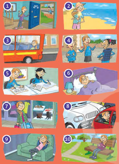 1. FIND THE PREPOSITION. Work in groups. Look at the pictures and say where the person is. Use at, in and on. Find the four pictures that use the same preposition.