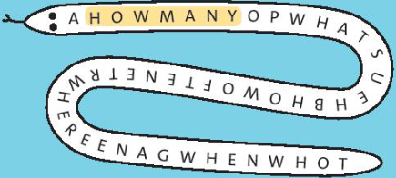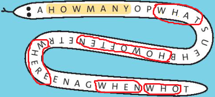 5. WORDSNAKE. Work in pairs. Find the question words and complete the questions. Ask and answer the questions.